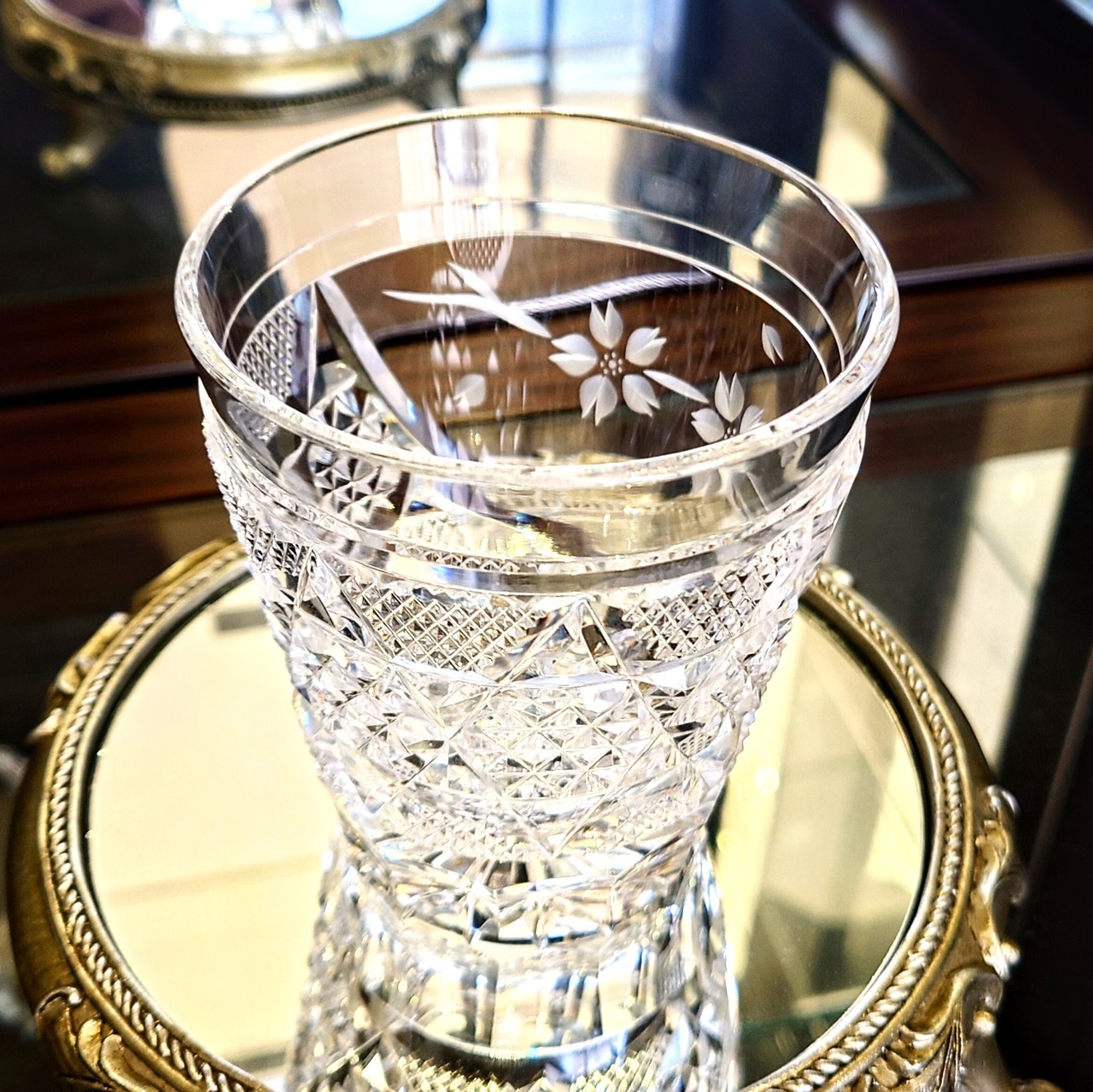 ガラスに彫り込みを入れる、繊細な切子技術で生み出されたこの逸品は、気品と洗練を兼ね備えた逸品です。